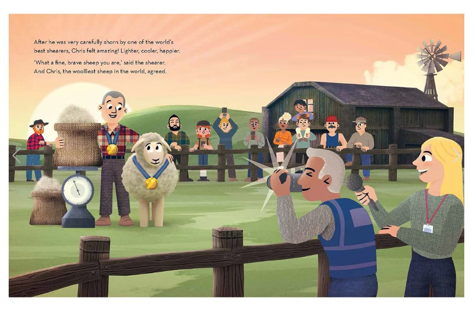 Chris the merino sheep, nervous about his first shearing, escapes into the bush. At first Chris enjoys his new life among the gum trees, but as the years go by, his fleece grows heavier and heavier. Chris’s journey into the unknown takes a turn when he encounters a wiry dingo. Is the dingo here to help Chris overcome his fears? Can Chris find his way back to the farm? Will he become the world’s woolliest sheep?